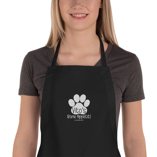 Black Apron w/ Embroidered Paw Logo and "Bone Appétit!" tag