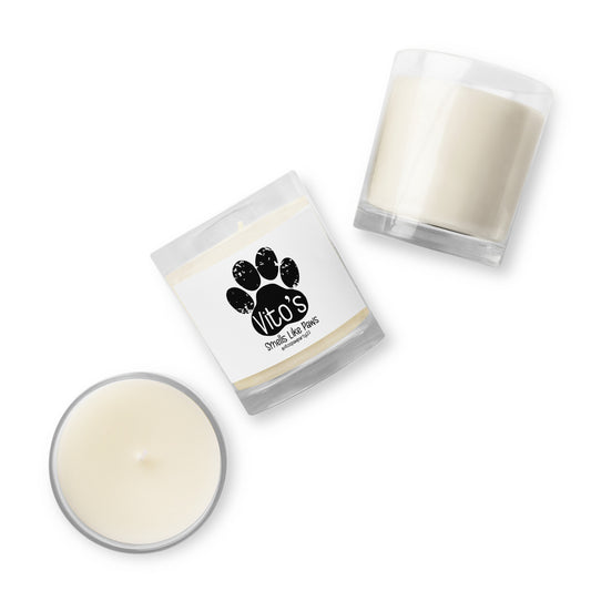Glass Jar Wax Candle with Vito Paw Logo and "Smell Like Paws"